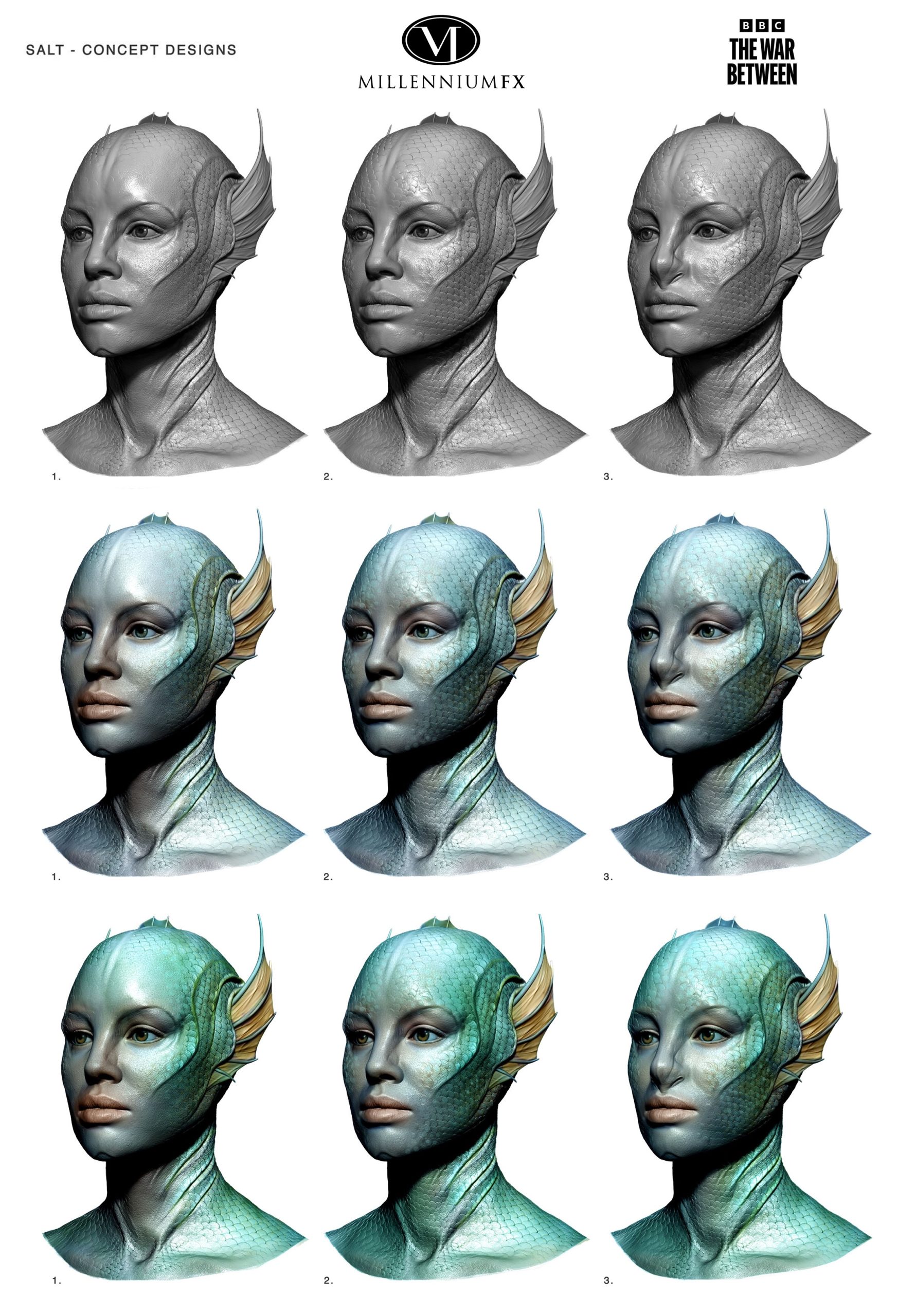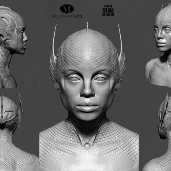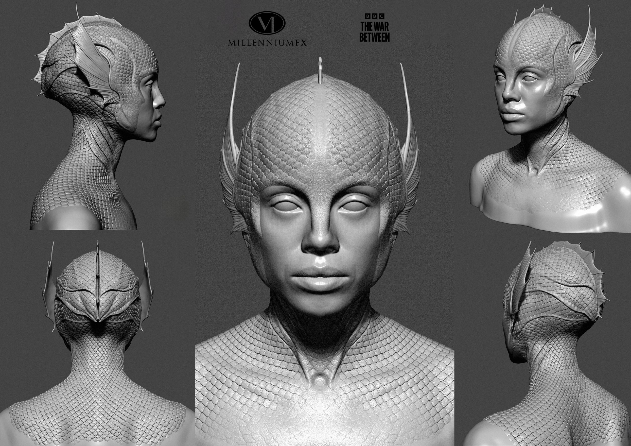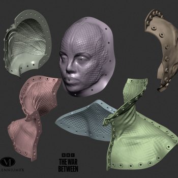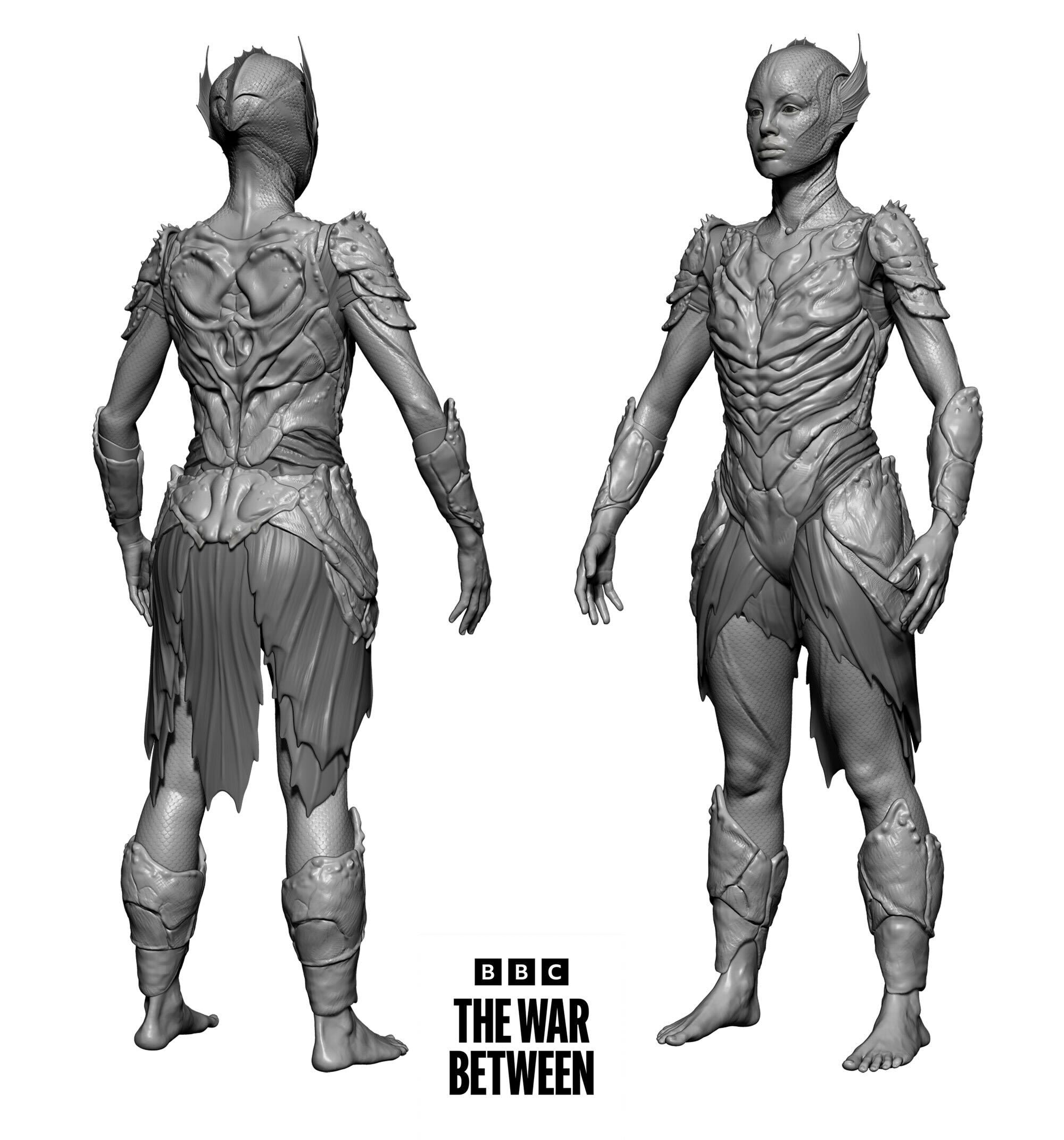 BBC, The War Between the Land and the Sea – full face and body prosthetics, and armour for Gugu Mbatha-Raw. 3D modelled designs and moulds, with different elements cast in silicone, foam latex and polyurethane.