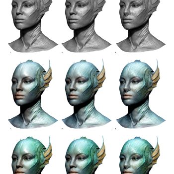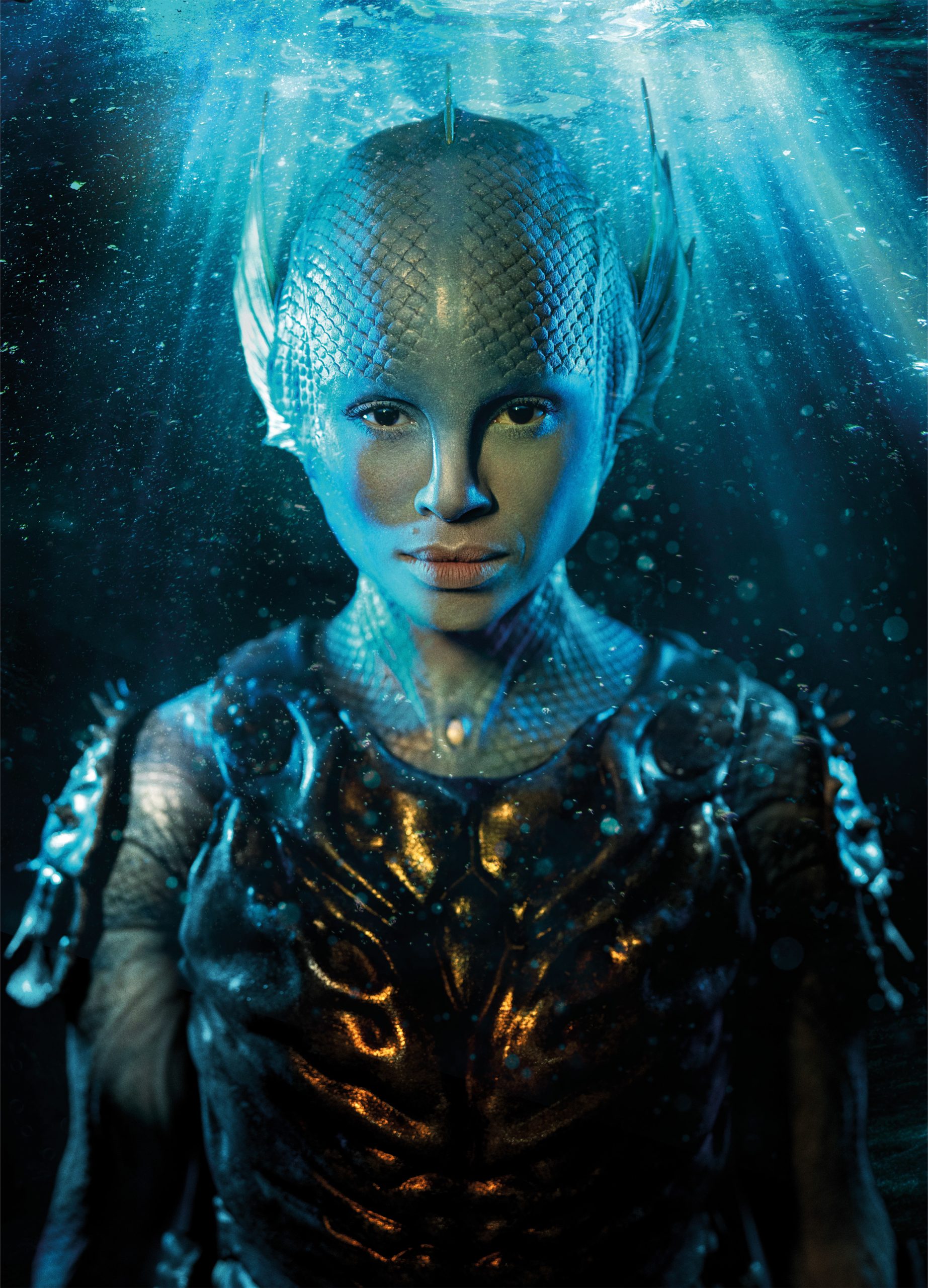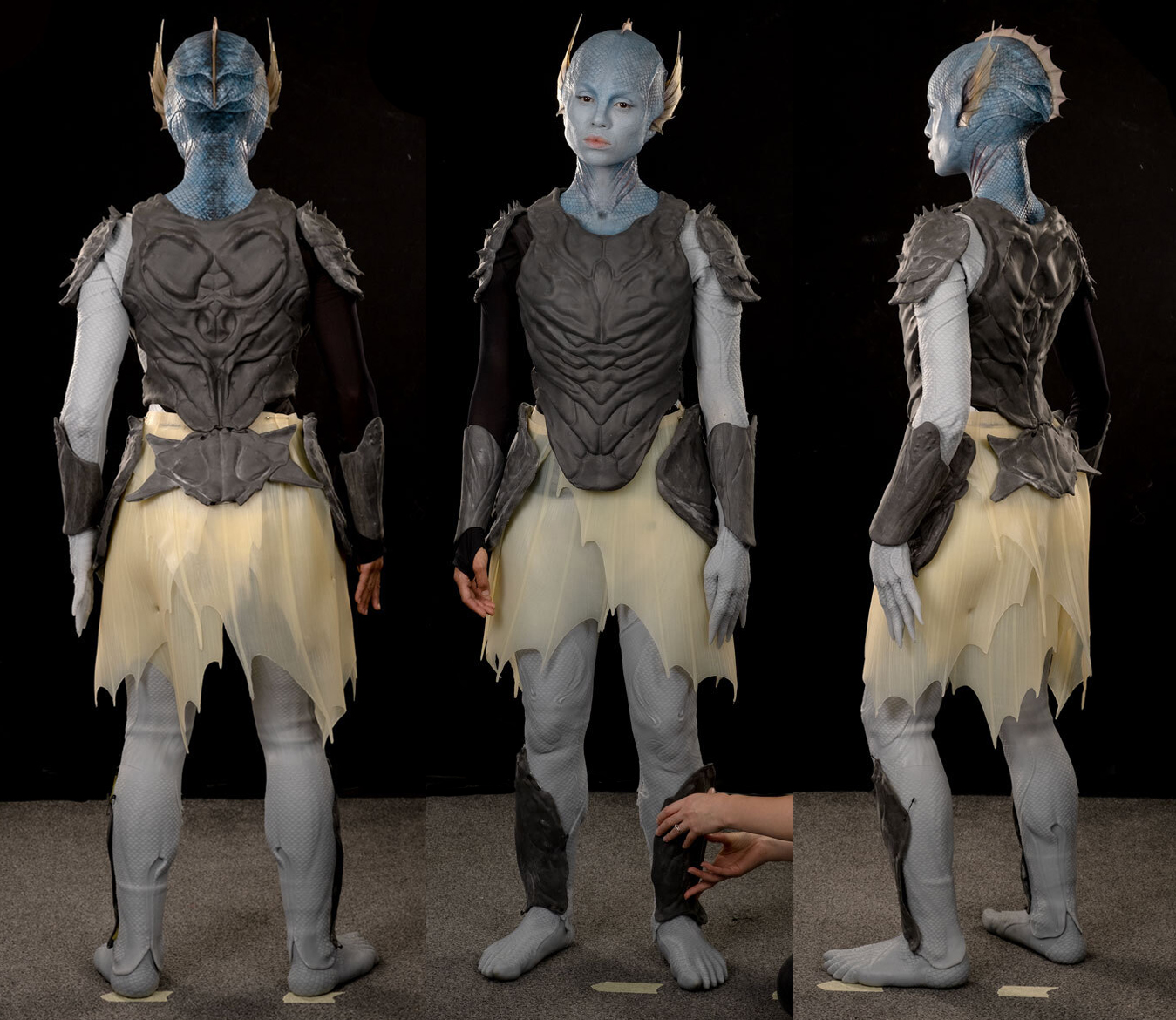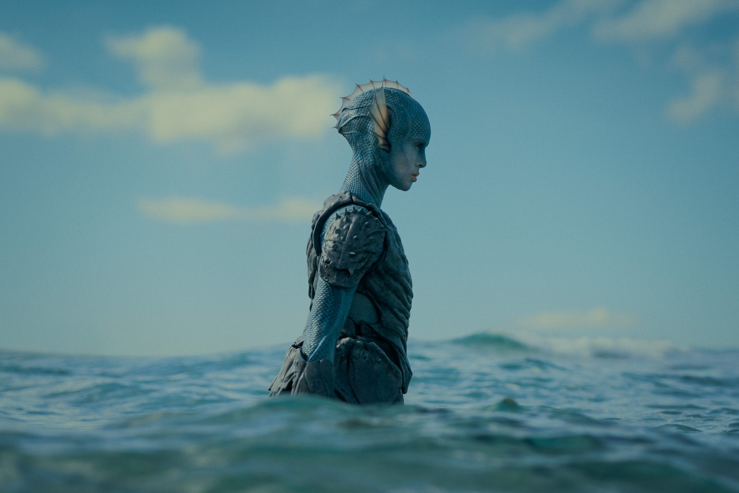 BBC, The War Between the Land and the Sea – full face and body prosthetics, and armour for Gugu Mbatha-Raw. 3D modelled designs and moulds, with different elements cast in silicone, foam latex and polyurethane.